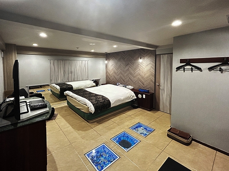 ・充実の設備: 全室に大型TV、VOD(映画見放題)、Wi-Fiを完備。
